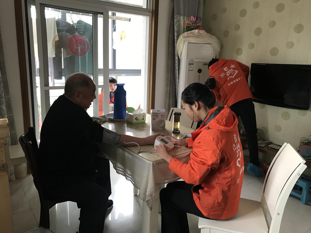 除此之外,志愿者們還認真地為老人測量血壓,鼓勵老人們健康飲食,叮囑他們注意日常作息、飲食習慣,保持身體健康。