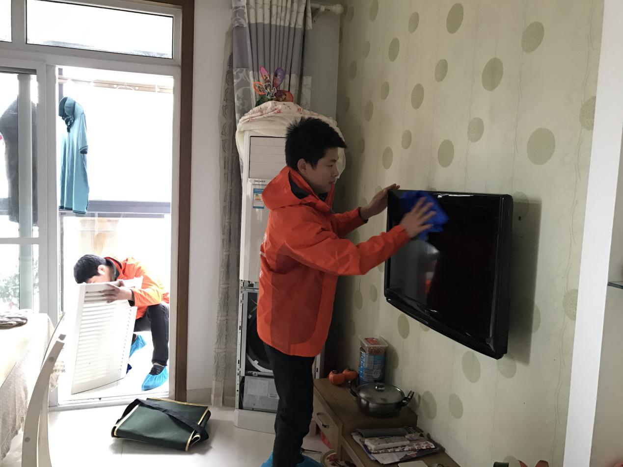 另一邊的志愿者們投入到清潔工作中,清洗空調過濾網、油煙機、窗紗......由于空巢老人年齡比較大,行動多有不便,志愿者們反復拖凈地面,確保地面無濕滑現(xiàn)象。大家都盡自己所能為老人們創(chuàng)造一個干凈整潔的生活居所。在大家的共同努力下,老人們的家中窗明幾凈,煥然一新。