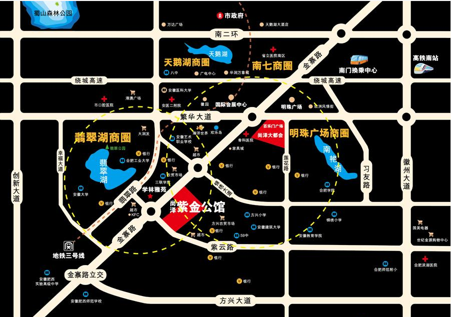 【尚澤紫金公館】位于金寨路與紫云路交口的東北角,屬于經(jīng)開(kāi)區(qū)的中軸位置,受到翡翠湖和明珠廣場(chǎng)兩大商圈的輻射,同時(shí)享受兩大商圈的配套。同時(shí),項(xiàng)目所處地理位置交通便利,便捷交通連接市區(qū)。10分鐘即可抵達(dá)高鐵南站,眾多公交路線經(jīng)過(guò),其次項(xiàng)目毗鄰地鐵三號(hào)線(在建)紫云路站,立體交通體系暢達(dá)全城,商務(wù)會(huì)面無(wú)憂出行。