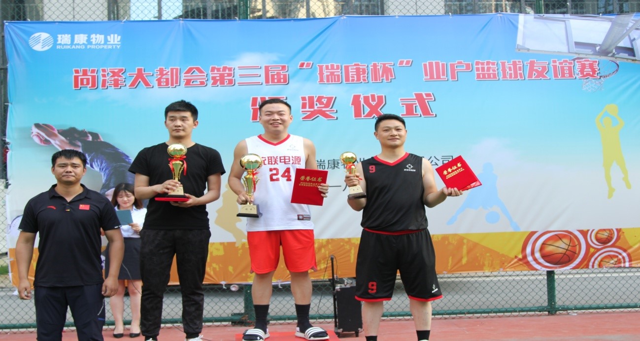 本屆“瑞康杯”業(yè)主籃球賽在6月15日?qǐng)A滿落幕,業(yè)戶(hù)們紛紛表示簡(jiǎn)單而又不失規(guī)范的賽制讓平時(shí)繁忙的他們能夠抽身參加,激烈的比賽讓他們?cè)谙掳嘀嗾业缴钪械牧硪环萜谂?,與隊(duì)友和對(duì)手間的磨合與歡樂(lè)讓他們更加熟悉自己的鄰里、珍惜這份鄰里情,最主要的是他們?cè)僖淮紊钌畹伢w會(huì)到瑞康的健康文化。這也正是物業(yè)與業(yè)主戶(hù)之間、業(yè)主戶(hù)鄰里之間和諧友誼新的開(kāi)始!