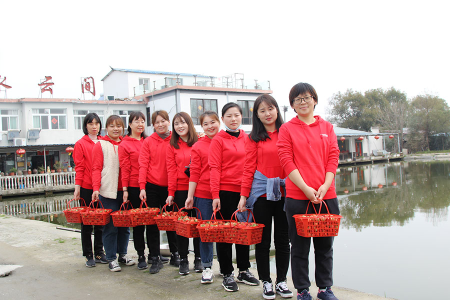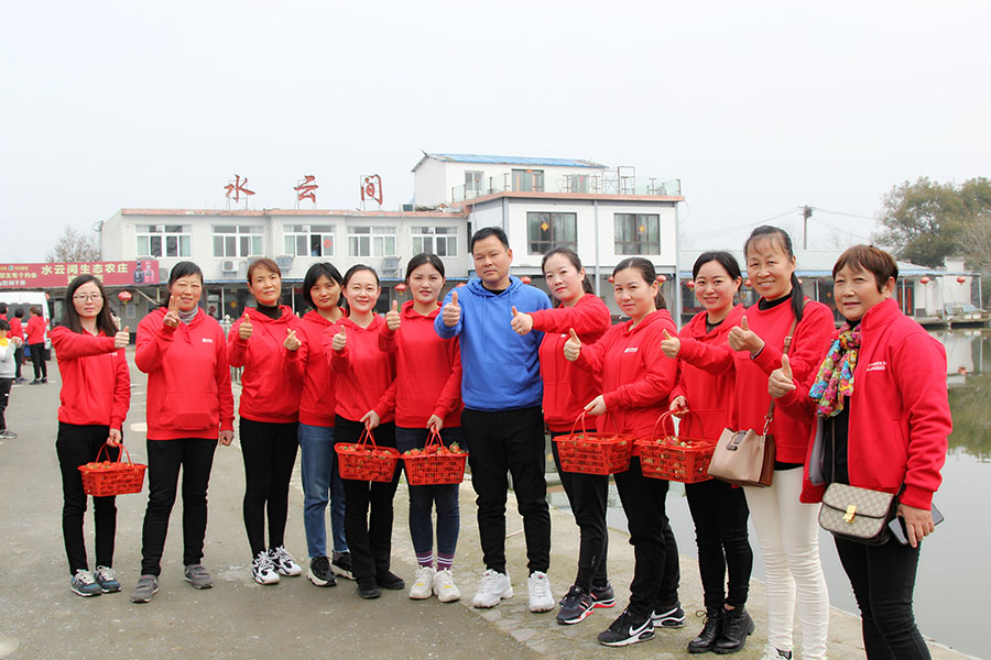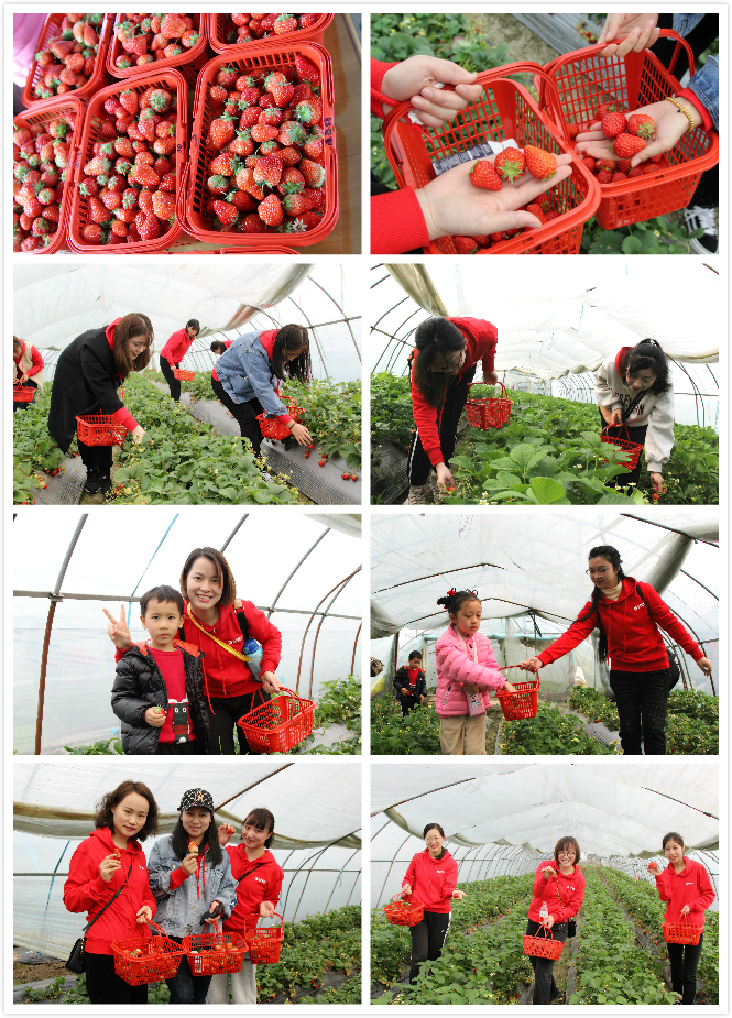 一路上,女同胞們歡聲笑語(yǔ),孩子們喜笑顏開(kāi)。剛抵達(dá)大圩草莓采摘基地,大家便按捺不住激動(dòng)的心情,紛紛鉆進(jìn)大棚里,感受“水果皇后”散發(fā)出的清香芬芳。有忙著與孩子一起體驗(yàn)田園采摘的樂(lè)趣,也有忙著品嘗香甜可口的味道,還有忙著與鮮紅嬌嫩的草莓拍照留念,悠然自得,舒心愜意。小籃筐中紅艷艷的果實(shí),讓所有人盡享滿載而歸的歡樂(lè)。經(jīng)營(yíng)管理層領(lǐng)導(dǎo)有的參與到采摘活動(dòng)中,還有的在池塘邊垂釣,其樂(lè)融融。中午,大家還品嘗了獨(dú)具特色的農(nóng)家宴,美味贊不絕口。返回途中,眾人臉上紛紛流露出意猶未盡的感覺(jué)。