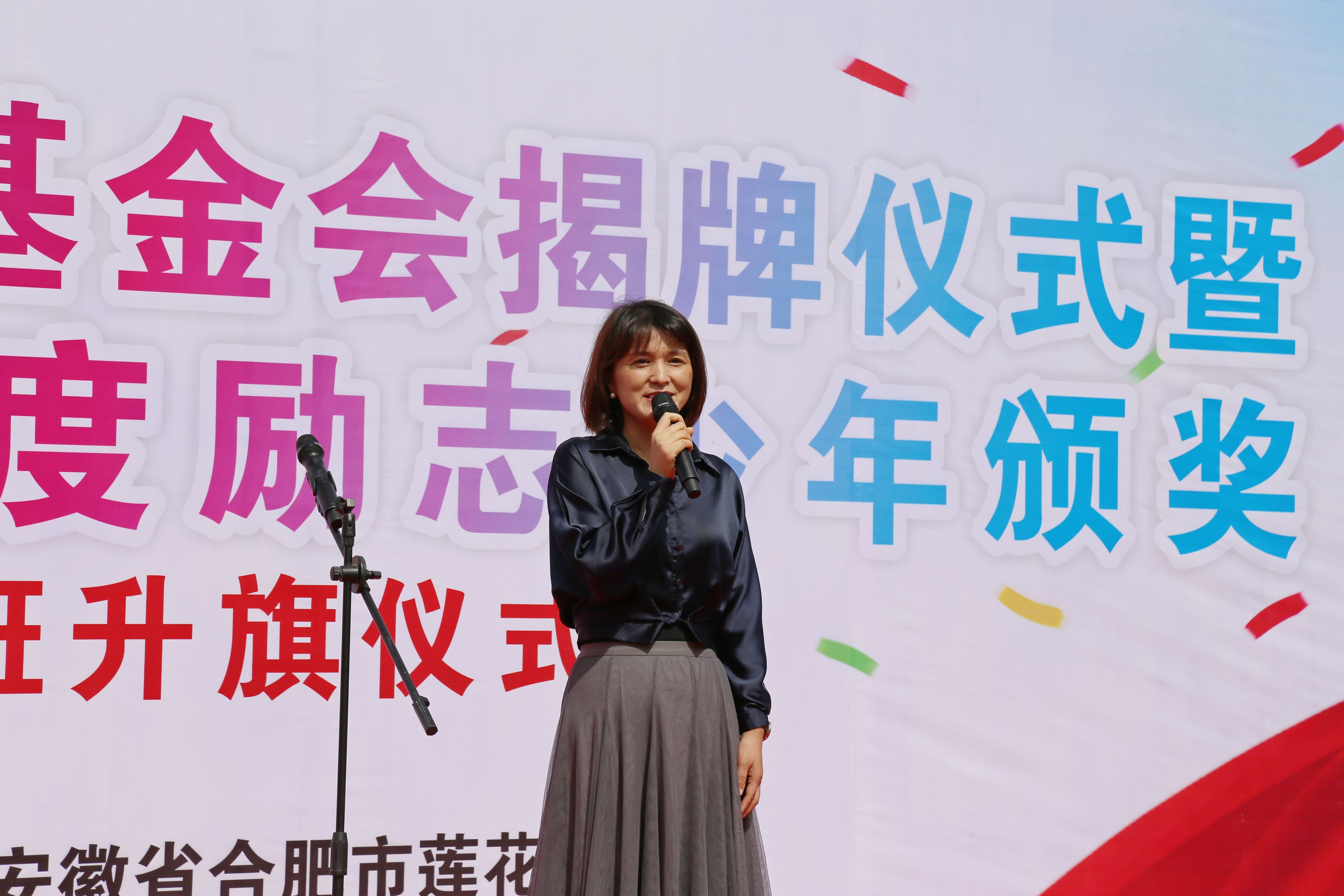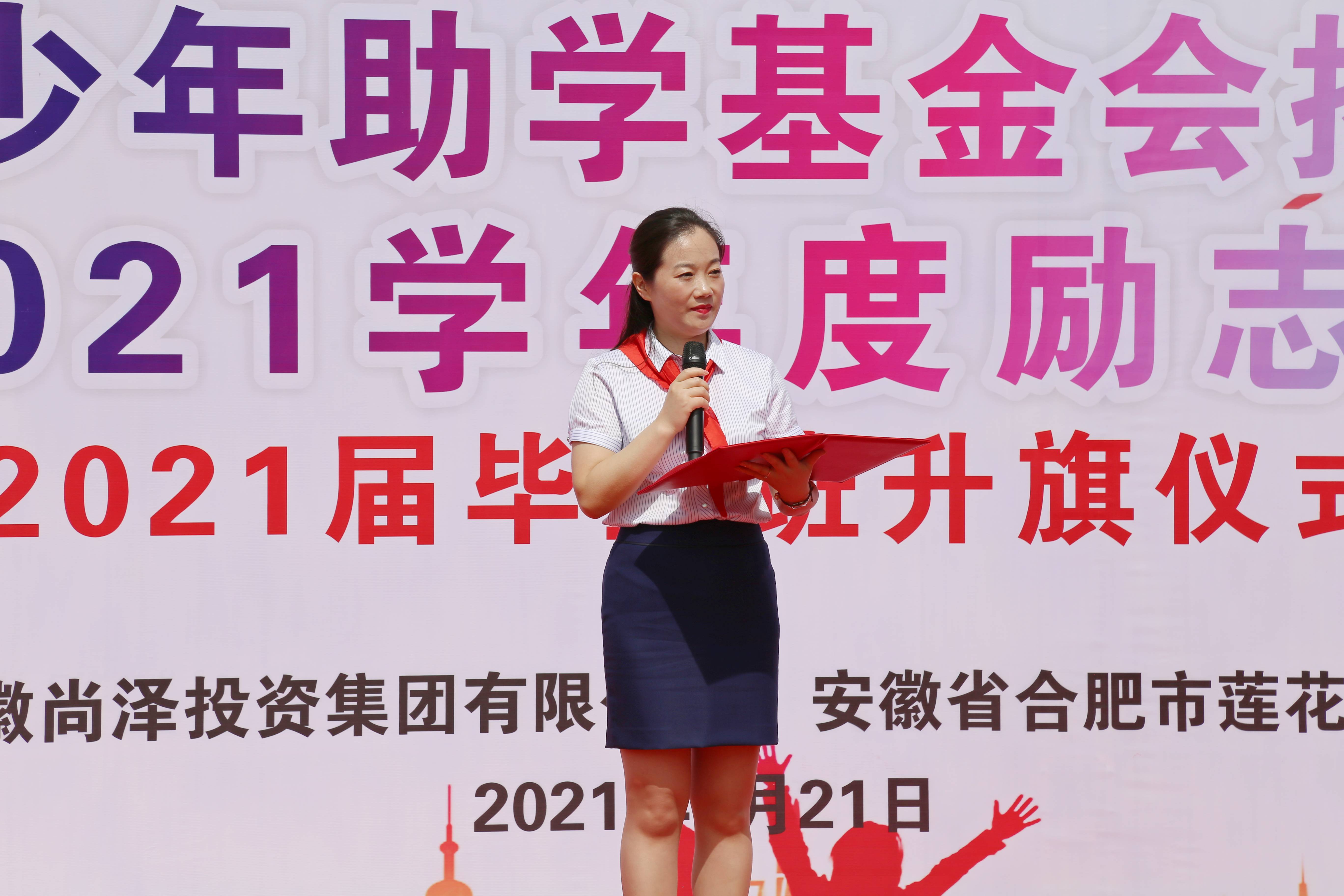 揭牌儀式開始前,蓮花小學全體師生舉行了2021屆畢業(yè)班升旗儀式,孩子們面向國旗敬禮,注視著國旗冉冉升起,胸前的紅領巾在風中顯得格外鮮艷。隨后在悠揚動聽的校歌聲中,蓮花小學校長姚賽明月登臺致辭,介紹了尚蓮基金會創(chuàng)建的初衷和使命,感謝尚澤集團投身教育事業(yè),捐資興教的無私奉獻。