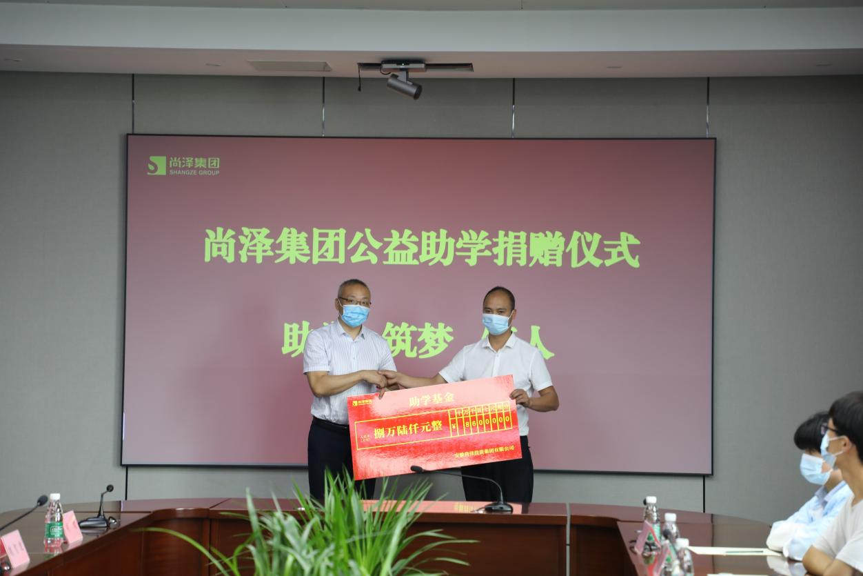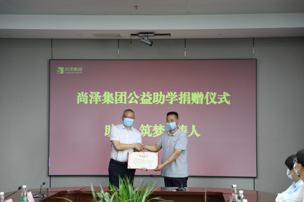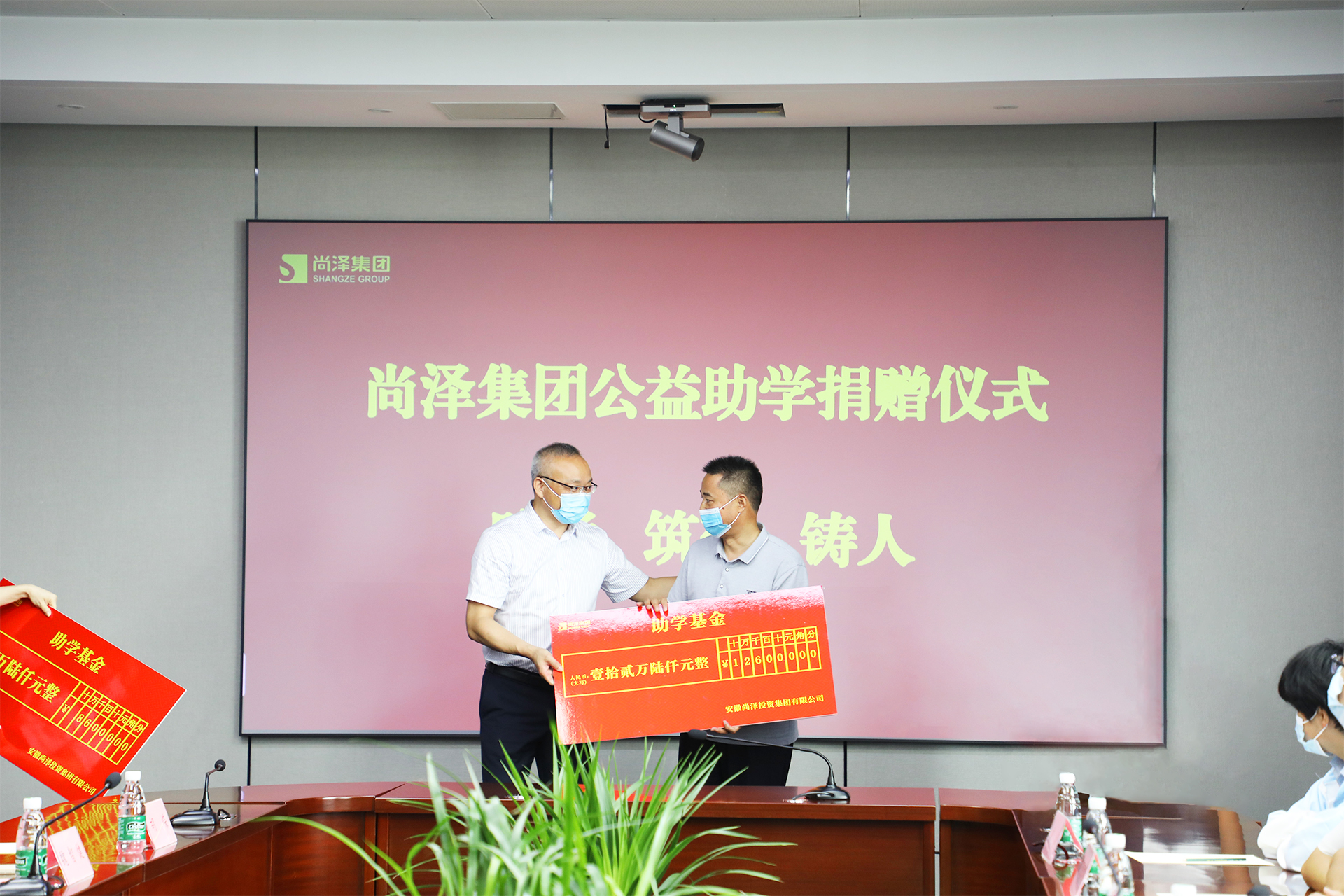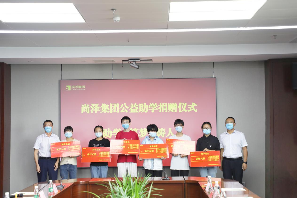 2021年9月8日上午,尚澤集團(tuán)2021年度公益助學(xué)捐贈儀式,在集團(tuán)23樓會議室圓滿舉行。合肥市民政局劉家全調(diào)研員、合肥市民政局社會事務(wù)處處長完勁松、廬江縣社會福利院院長華蔚、安徽同舟社會工作服務(wù)中心法定代表人蔣超群、尚澤集團(tuán)總裁王軍、集團(tuán)黨支部書記戴正春、尚澤集團(tuán)副總裁朱世軍以及受資助的學(xué)生代表共同參加了本次資助儀式。