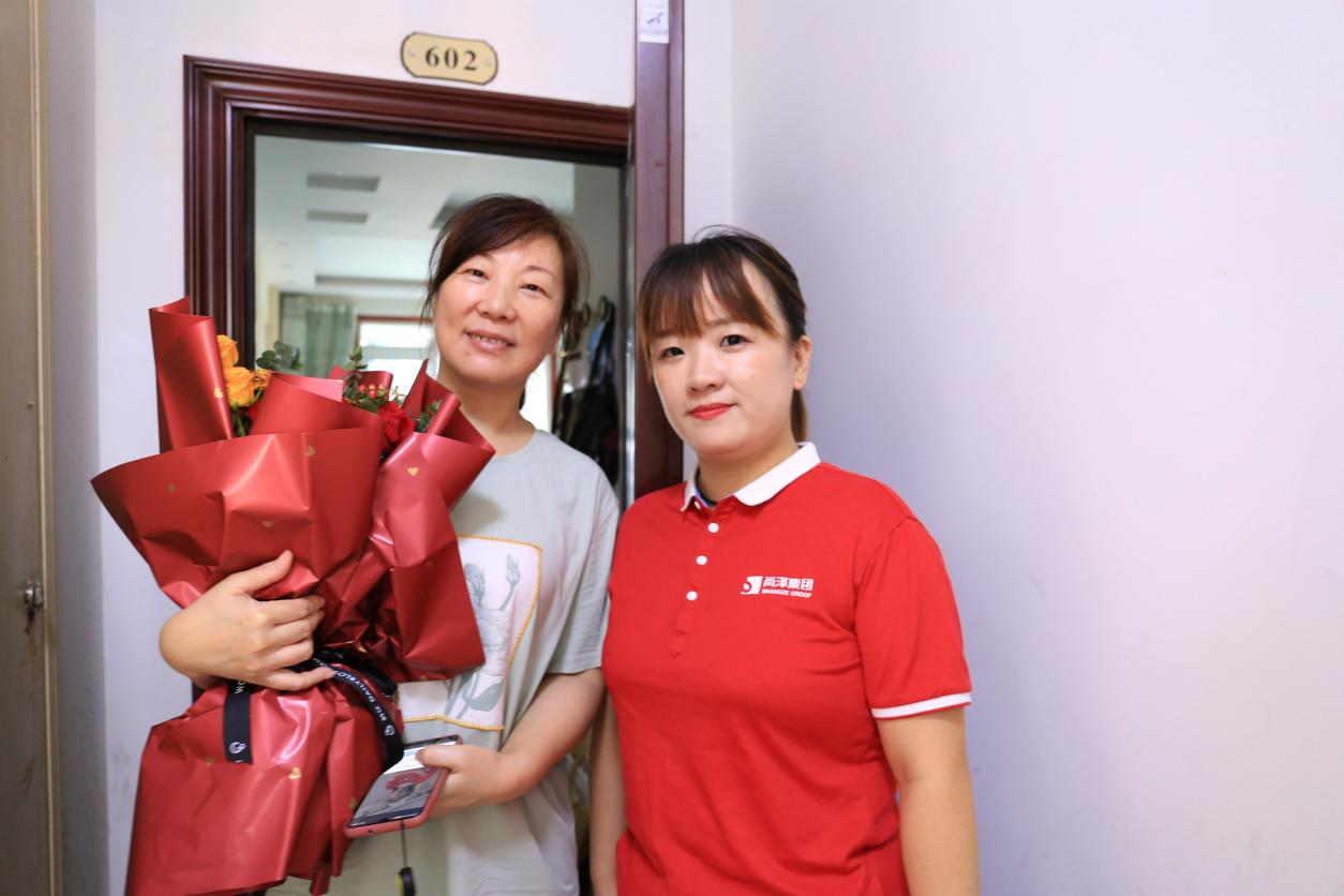 當(dāng)天上午,志愿者們手捧鮮花對居住在尚澤大都會、百樂門的教師業(yè)戶們進(jìn)行了入戶走訪,為老師們送上節(jié)日的問候和美好的祝福,感謝他們?yōu)榻逃聵I(yè)發(fā)展做出的貢獻(xiàn)。收到鮮花和祝福的老師們驚喜萬分,也無比感動。