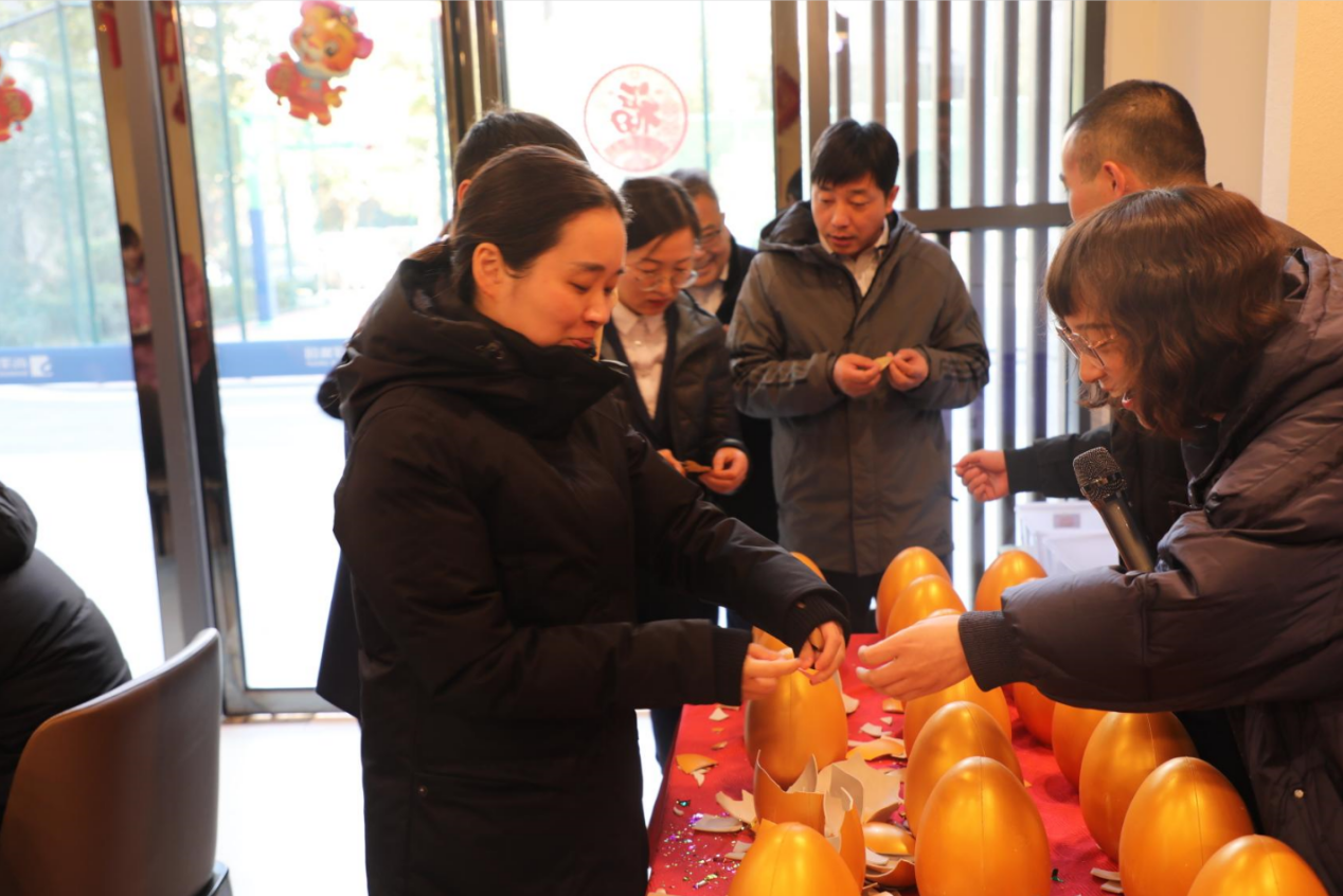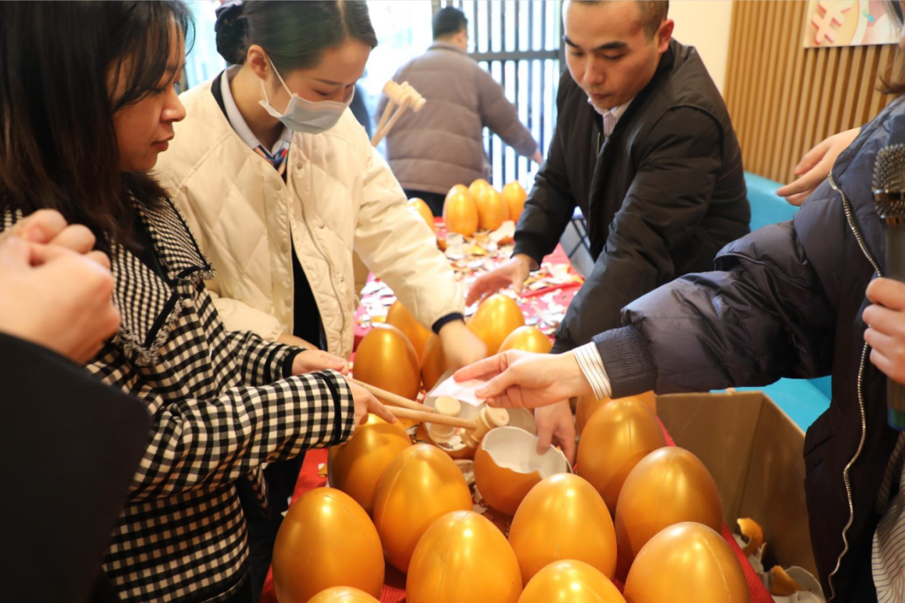 此次迎新活動(dòng)的高潮時(shí)刻必然是驚喜元“蛋”環(huán)節(jié)。企業(yè)管理中心的同事提前在金蛋中放置了各種驚喜,有奶茶、彩票、公仔、電影票等,當(dāng)然最讓人期待的還是現(xiàn)金紅包。紅包內(nèi)金額不等,都是寓意吉祥的數(shù)字。小伙伴們滿懷期待“敲”開屬于自己的好運(yùn)。