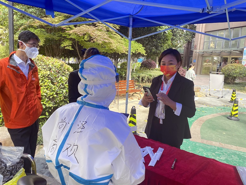 4月21日凌晨,合肥市疫情防控應急指揮部發(fā)出《關于在蜀山、經(jīng)開和高新區(qū)開展核酸檢測的通告》,尚澤集團黨支部聞令而動,派遣志愿者第一時間趕到各自點位,協(xié)助丹霞社居委開展轄區(qū)全員核酸檢測工作。