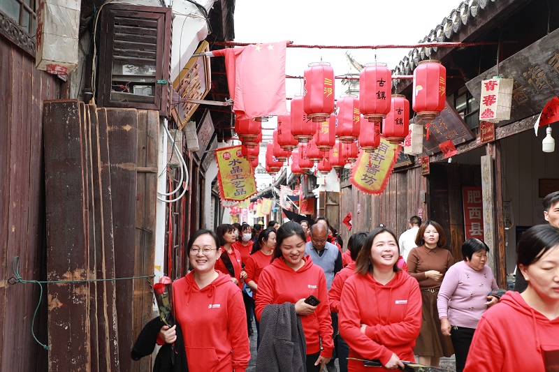 人間三月芳菲始,踏青賞花正當時。為進一步豐富員工文化生活,引領健康生活新方式,3月8日,尚澤集團組織了一場豐富多彩的婦女節(jié)采風之旅。活動開始前,集團高管代表公司向奮戰(zhàn)在各個崗位上的女員工們送上福利,并致以節(jié)日的問候和誠摯的祝福。上午10:30,載著歡聲笑語的大巴車從集團出發(fā)前往三河古鎮(zhèn)。