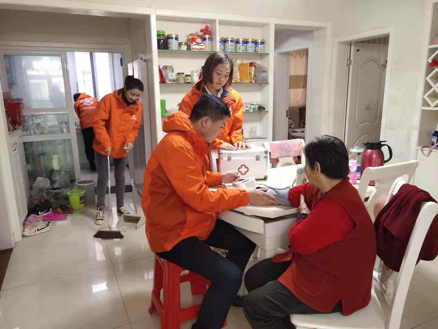 除此之外,志愿者們還認(rèn)真地為老人測量血壓,鼓勵老人們健康飲食,叮囑他們注意日常作息、飲食習(xí)慣,保持身體健康。
