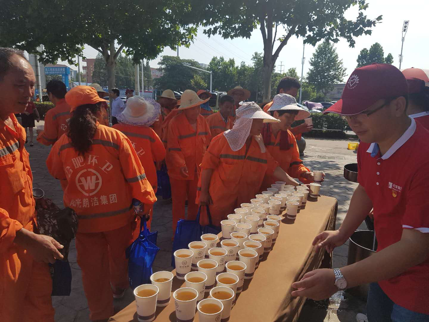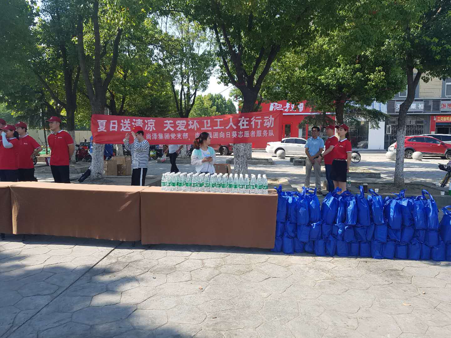 大暑過后高溫來襲,尚澤集團(tuán)黨支部、集團(tuán)向日葵志愿者服務(wù)隊(duì)共同舉辦了“夏日送清涼、關(guān)愛伴我行”慰問環(huán)衛(wèi)工人活動。同時,蓮花社區(qū)黨委副書記劉子飛、丹霞居委會黨總支副書記李長青等領(lǐng)導(dǎo)也參加了此次慰問活動,集團(tuán)黨支部書記戴正春帶領(lǐng)集團(tuán)部分黨員同志與志愿者隊(duì)員,來到丹霞環(huán)衛(wèi)站點(diǎn)慰問一線環(huán)衛(wèi)工人,對環(huán)衛(wèi)工人在酷暑中奮戰(zhàn)、為清潔城市、改善環(huán)境而辛勤地付出致以親切的慰問,告誡集團(tuán)黨員和志愿者服務(wù)隊(duì)員要關(guān)心和尊重環(huán)衛(wèi)工人的勞動成果,共同維護(hù)城市的環(huán)境衛(wèi)生。隨后,社區(qū)領(lǐng)導(dǎo)與大家一起將慰問品親自送到環(huán)衛(wèi)工人的手上,志愿者們也為環(huán)衛(wèi)工人送上解暑的綠豆湯與礦泉水。