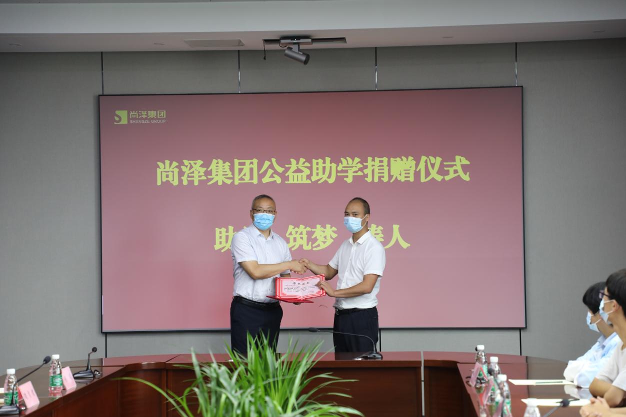 隨后,合肥市民政局及廬江縣民政局向尚澤集團(tuán)總裁王軍頒發(fā)了愛(ài)心企業(yè)榮譽(yù)證書(shū),尚澤集團(tuán)黨支部書(shū)記戴正春和尚澤集團(tuán)副總裁朱世軍為學(xué)生頒發(fā)助學(xué)金。